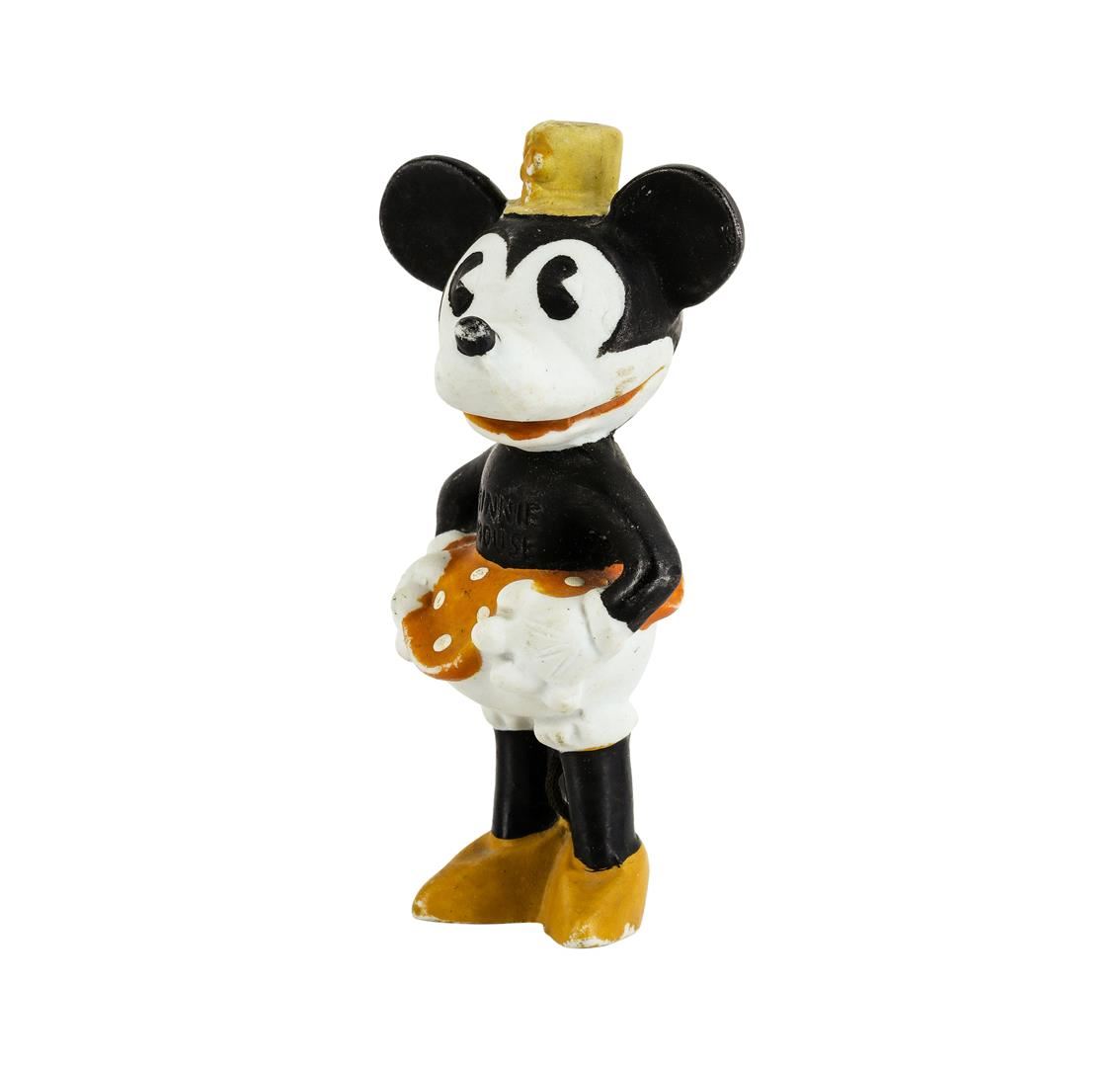 Pie-Eyed Minnie Mouse Bisque Figurine from the 1930's. Minnie measures 5 inches high. This is an authentic Disney piece and is impressed with "Made in Japan" on the back of Minnie's shirt and "Minnie Mouse" on the front of her shirt. This item does have some wear, but mostly on the back. She is in great shape for being from the 1930's. This specific Minnie figurine is a very RARE and a DESIRABLE piece. Please look at the photos to see the condition of the figurine.