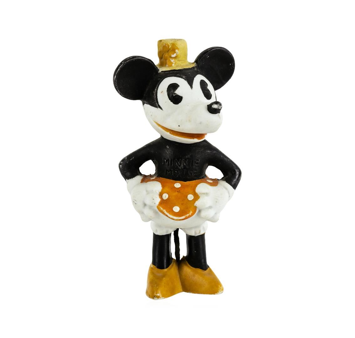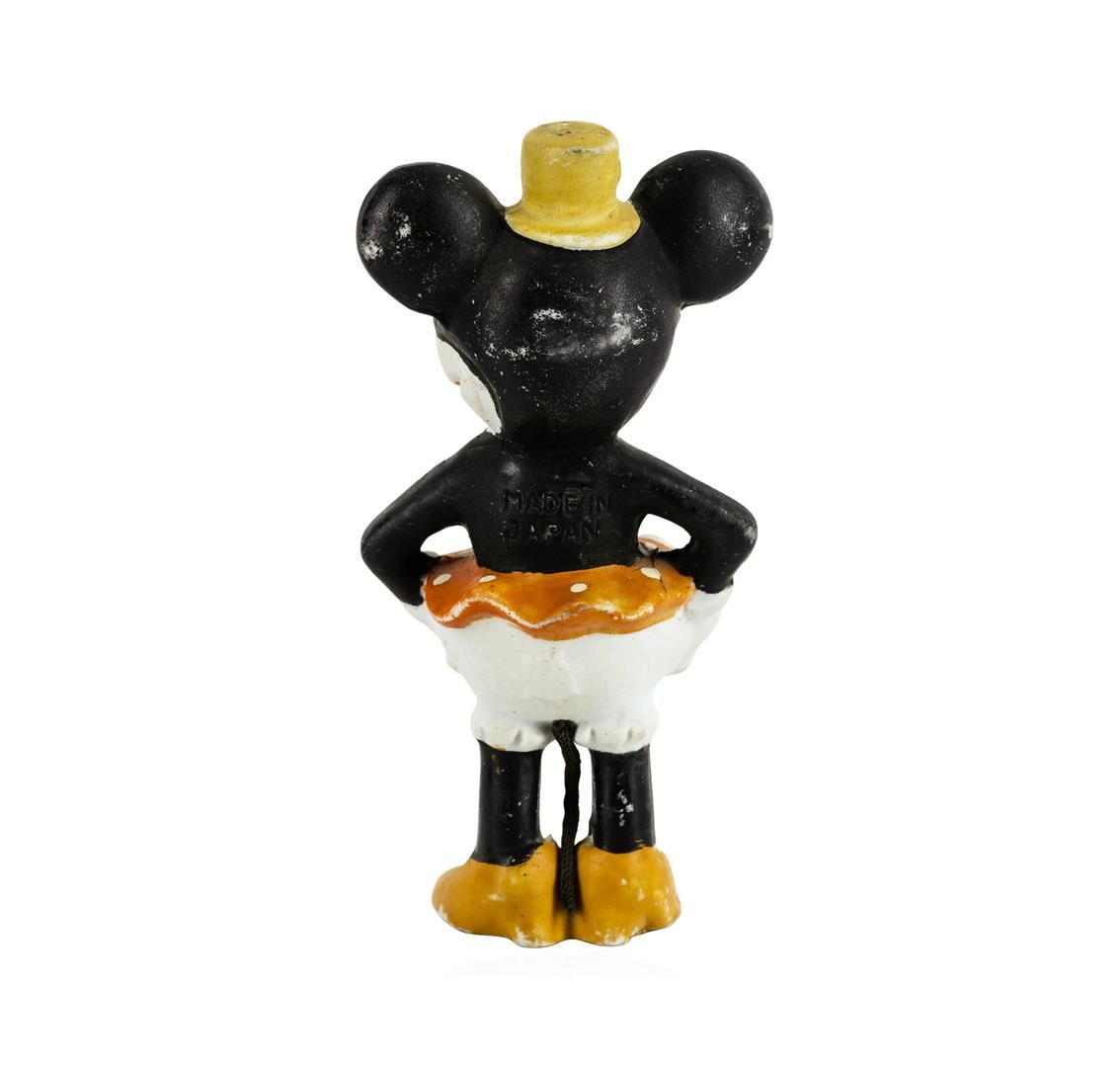Pie-Eyed Minnie Mouse Bisque Figurine from the 1930's. Minnie measures 5 inches high. This is an authentic Disney piece and is impressed with "Made in Japan" on the back of Minnie's shirt and "Minnie Mouse" on the front of her shirt. This item does have some wear, but mostly on the back. She is in great shape for being from the 1930's. This specific Minnie figurine is a very RARE and a DESIRABLE piece. Please look at the photos to see the condition of the figurine.