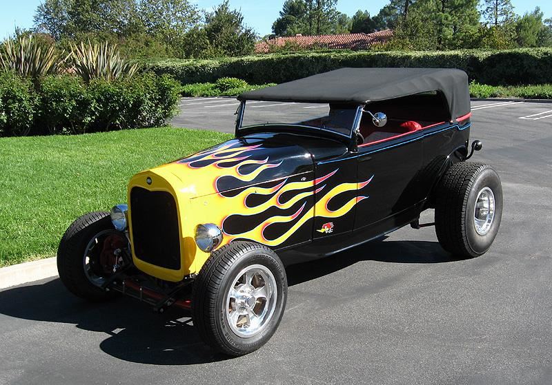 1931 FORD HIGHBOY PHAETON HOTROD! This Gloss Jet Black Beauty with Bright Yellow & Orange Flames is a Crowd Pleaser ! Pro Built 1932 Ford style frame designed for Model A Bodies by LRS Co. in MO. Cost alone for just the Stage 3 style frame was $5000 ! Very high-quality fiberglass body by Wescott, the best in the hotrod industry. Lift-Off Padded top. Steel Hood. Ford 302 V-8 Roller Motor with thump'n Roller Cam. Roller rockers. Ported & Polished heads. Edelbrock Intake and Carb. Fresh rebuilt Ford C-4 Automatic Trans ! New Custom exhaust with megaphone tips that Sounds Awesome ! Custom Pleated Upholstery. Custom TCI gauges. Lokar floor shifter. Chrome Alternator. Aluminum Air Cleaner & Valve Covers! Front Disc Brakes! Chopped Chrome Windshield! Chrome Radiator Overflow Tank! Chrome Headlights! Walker radiator w/ electric fan. New Halibrand style wheels and tires. Dropped tube axel & 4-bar setup. Chrome shocks & triangulated 4 bar rear with Carrera coilover shocks. Speedway quick-change cover on the 8:8 Ford rear end. New Vega steering box. Huge 31 x 12.50 Rear Tires! Low Miles! This just Screams Hot Rod in Looks & Sound! Own a Truly different Hot Rod, a Highboy Phaeton! You can take this Clean Attractive Streetrod to Car Shows Now!