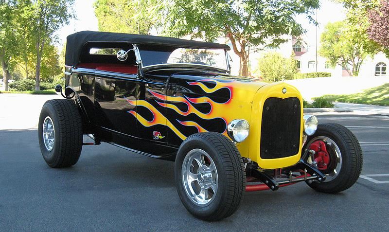 1931 FORD HIGHBOY PHAETON HOTROD! This Gloss Jet Black Beauty with Bright Yellow & Orange Flames is a Crowd Pleaser ! Pro Built 1932 Ford style frame designed for Model A Bodies by LRS Co. in MO. Cost alone for just the Stage 3 style frame was $5000 ! Very high-quality fiberglass body by Wescott, the best in the hotrod industry. Lift-Off Padded top. Steel Hood. Ford 302 V-8 Roller Motor with thump'n Roller Cam. Roller rockers. Ported & Polished heads. Edelbrock Intake and Carb. Fresh rebuilt Ford C-4 Automatic Trans ! New Custom exhaust with megaphone tips that Sounds Awesome ! Custom Pleated Upholstery. Custom TCI gauges. Lokar floor shifter. Chrome Alternator. Aluminum Air Cleaner & Valve Covers! Front Disc Brakes! Chopped Chrome Windshield! Chrome Radiator Overflow Tank! Chrome Headlights! Walker radiator w/ electric fan. New Halibrand style wheels and tires. Dropped tube axel & 4-bar setup. Chrome shocks & triangulated 4 bar rear with Carrera coilover shocks. Speedway quick-change cover on the 8:8 Ford rear end. New Vega steering box. Huge 31 x 12.50 Rear Tires! Low Miles! This just Screams Hot Rod in Looks & Sound! Own a Truly different Hot Rod, a Highboy Phaeton! You can take this Clean Attractive Streetrod to Car Shows Now!