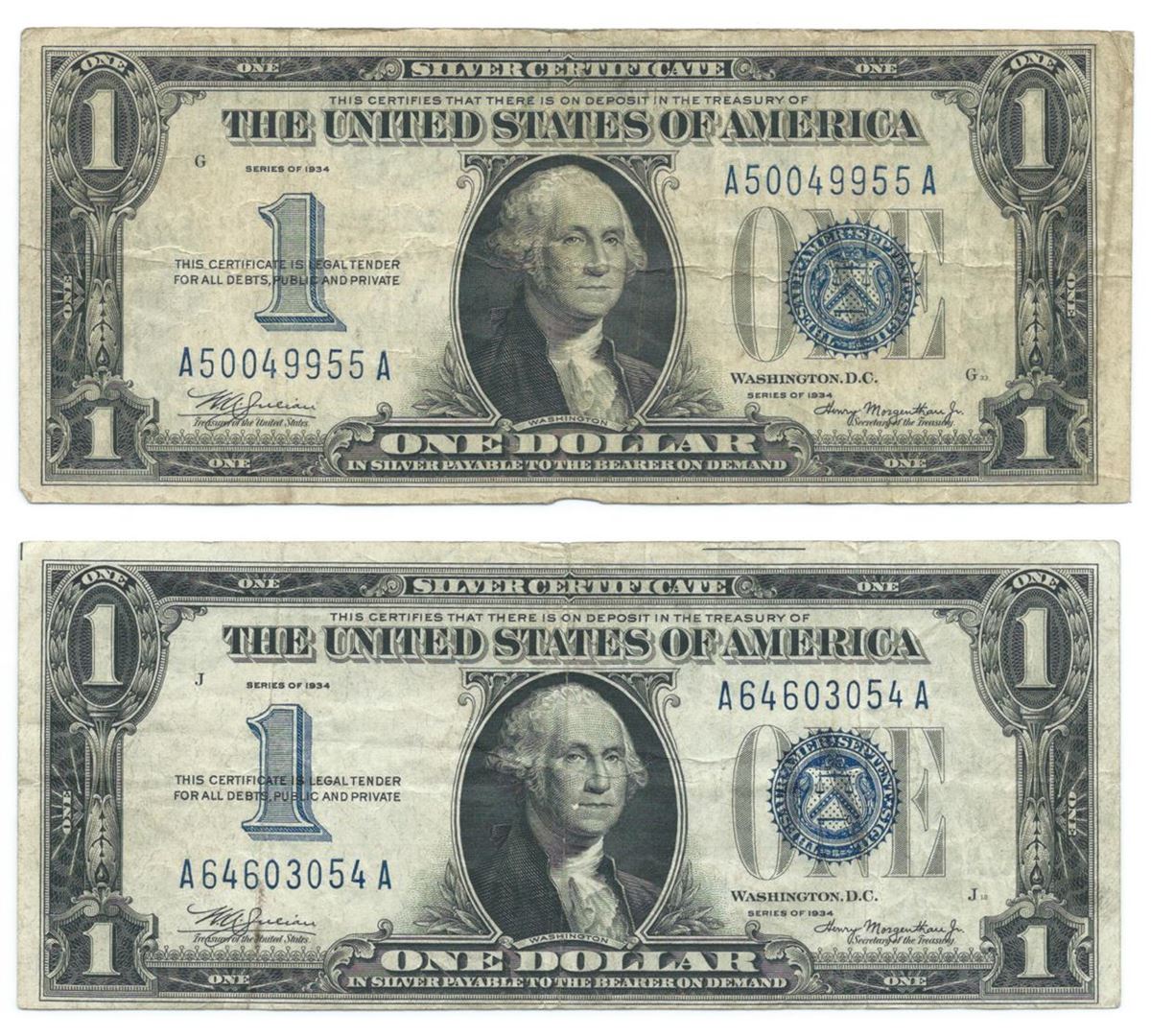 One 1934 $1 Silver Certificate Currency Lot of 2.