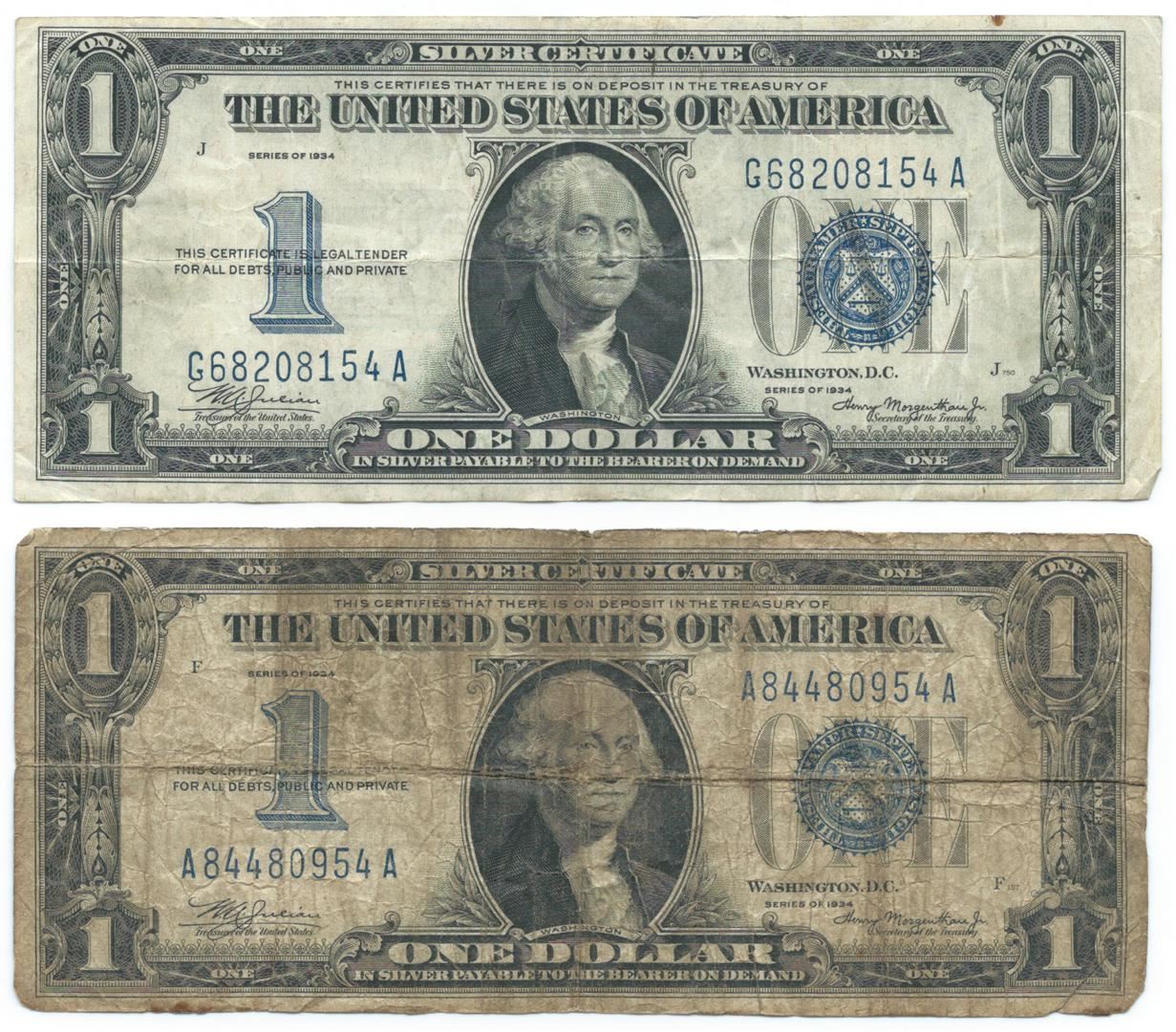 One 1934 $1 Silver Certificate Currency Lot of 2.