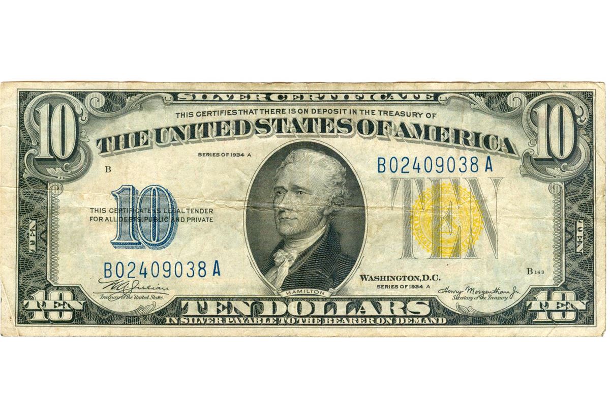 1934 $10 Fine North Africa Silver Certificate Currency.