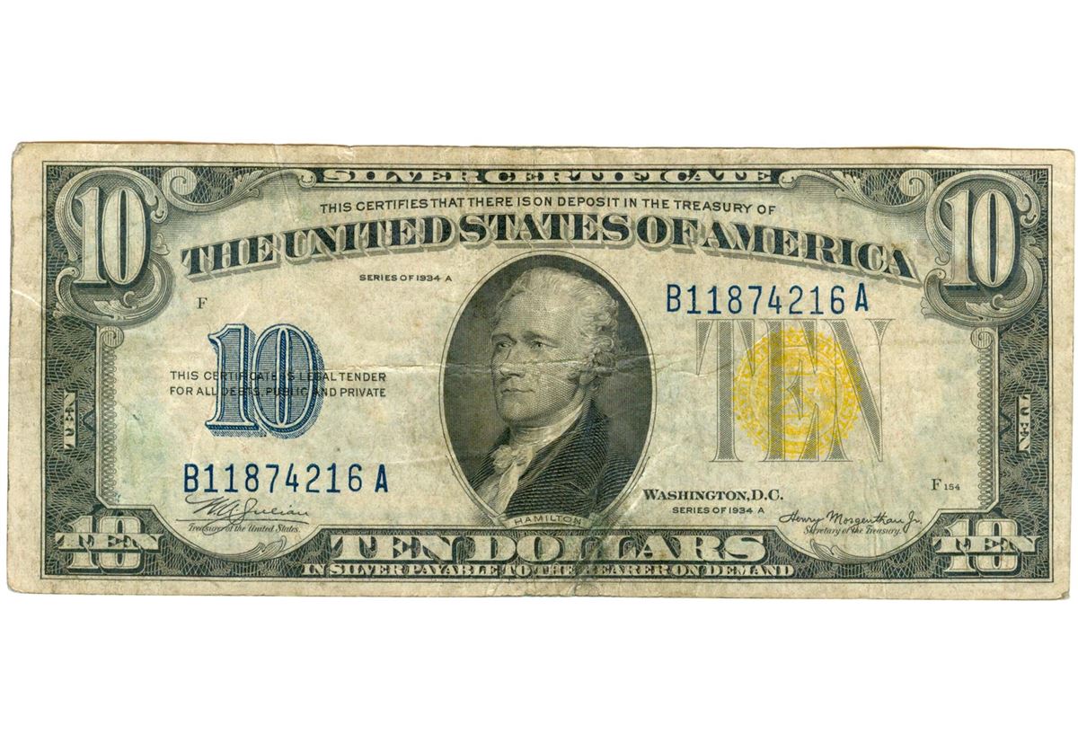 1934 $10 Fine North Africa Silver Certificate Currency.