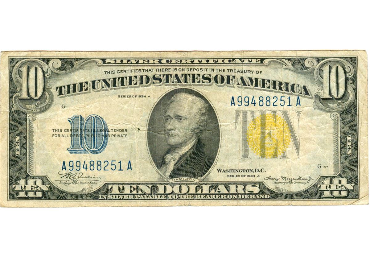 1934 $10 Fine North Africa Silver Certificate Currency.