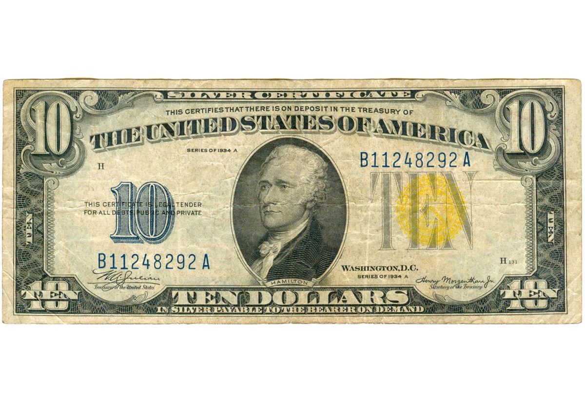 1934 $10 Fine North Africa Silver Certificate Currency.