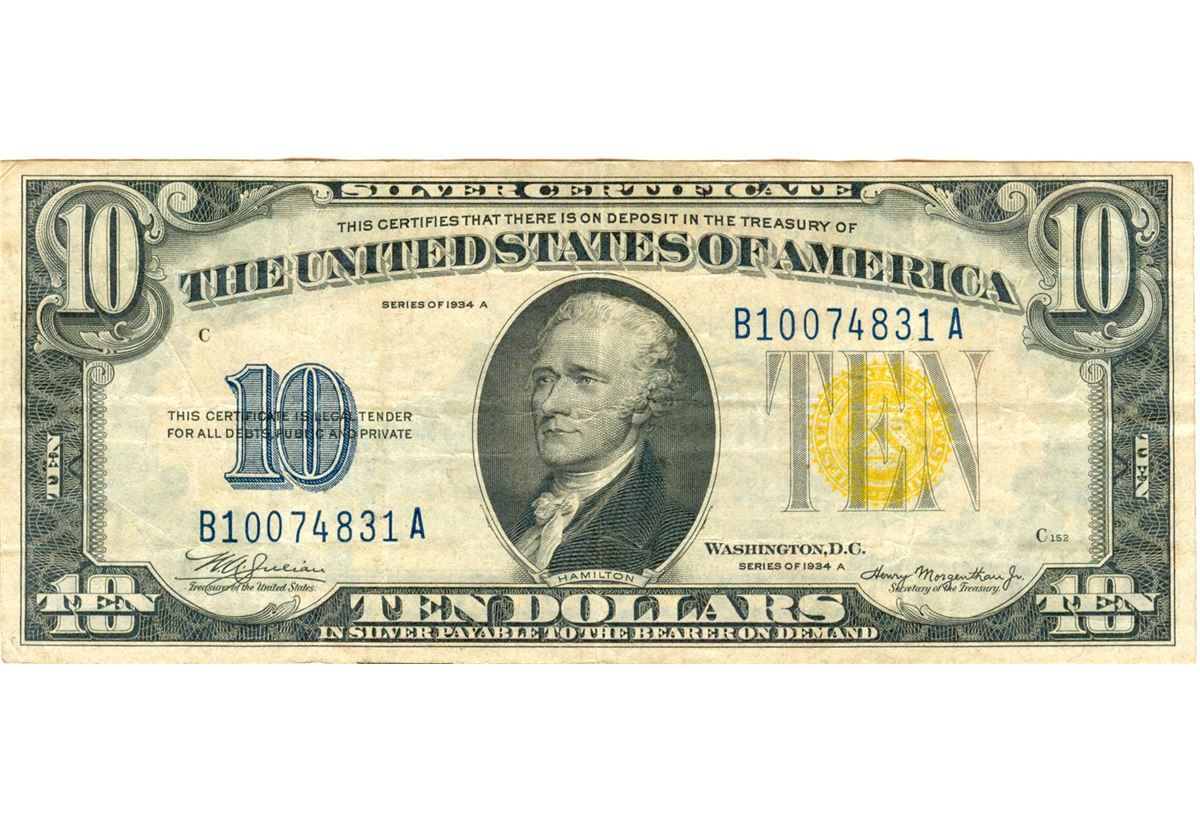 1934 $10 Fine North Africa Silver Certificate Currency.