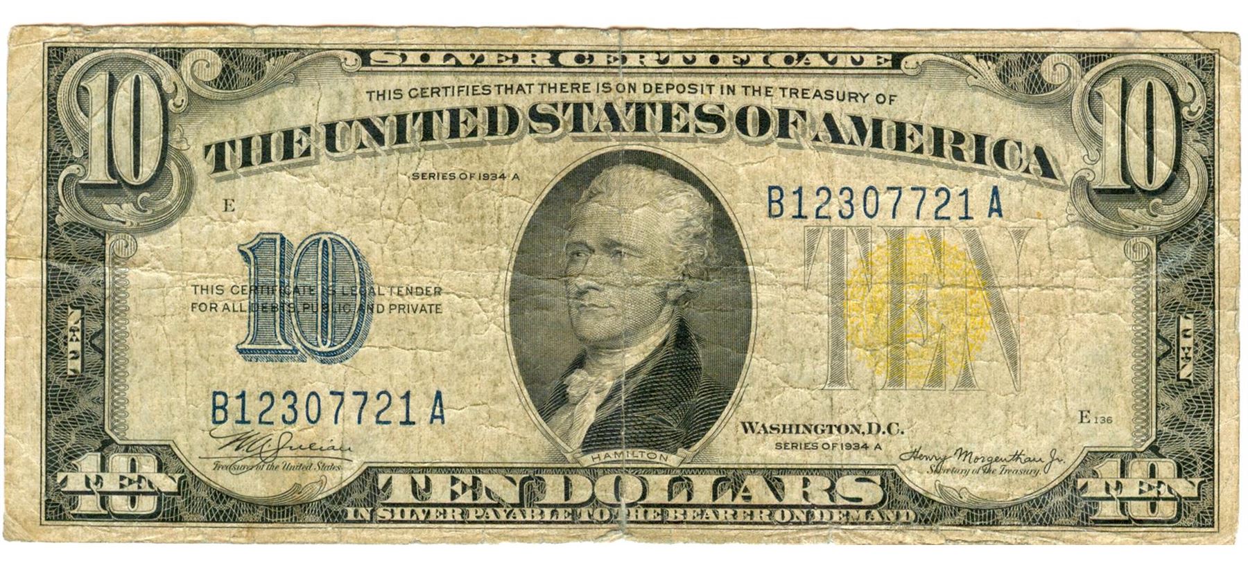 1934 $10 Fine North Africa Silver Certificate Currency.