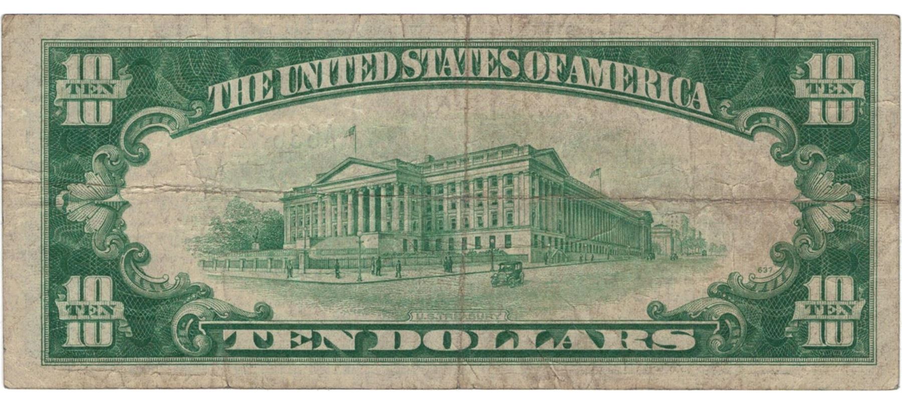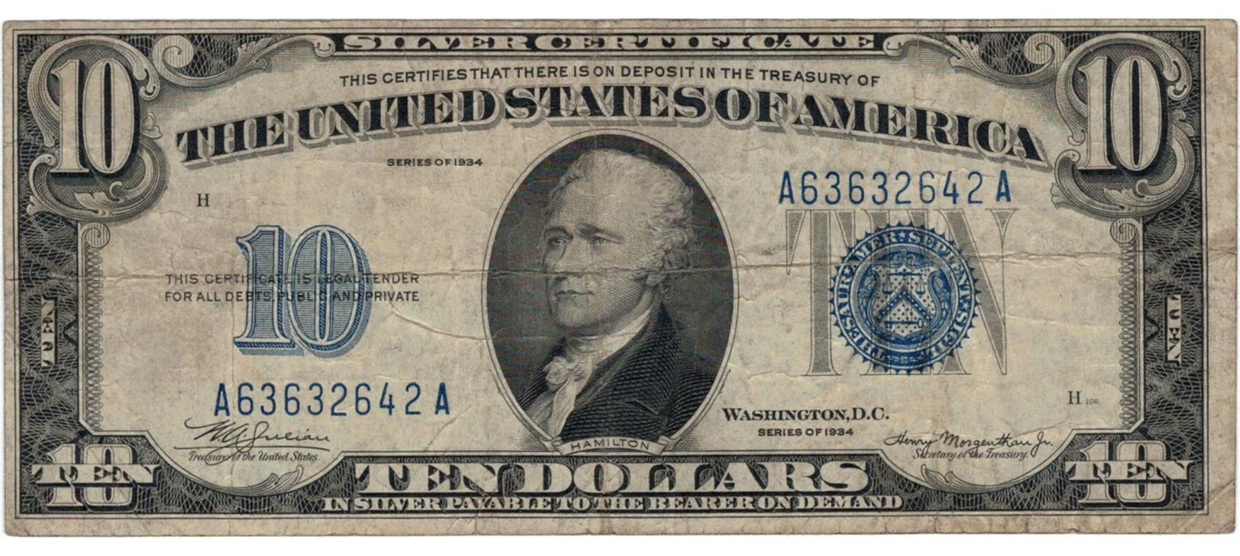 One 1934 $10 Silver Certificate Currency.