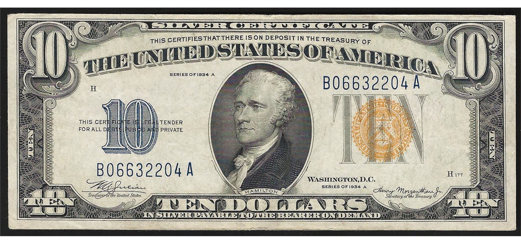 One 1934A $10 North Africa Silver Certificate WWII Emergency Note.