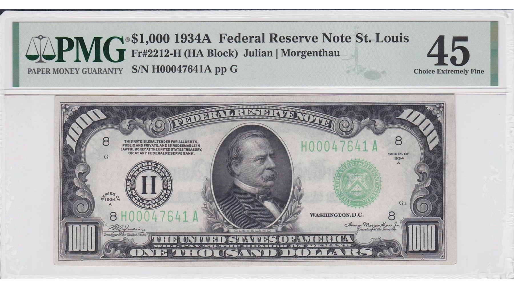 One 1934A $1000 Federal Reserve Note St. Louis.