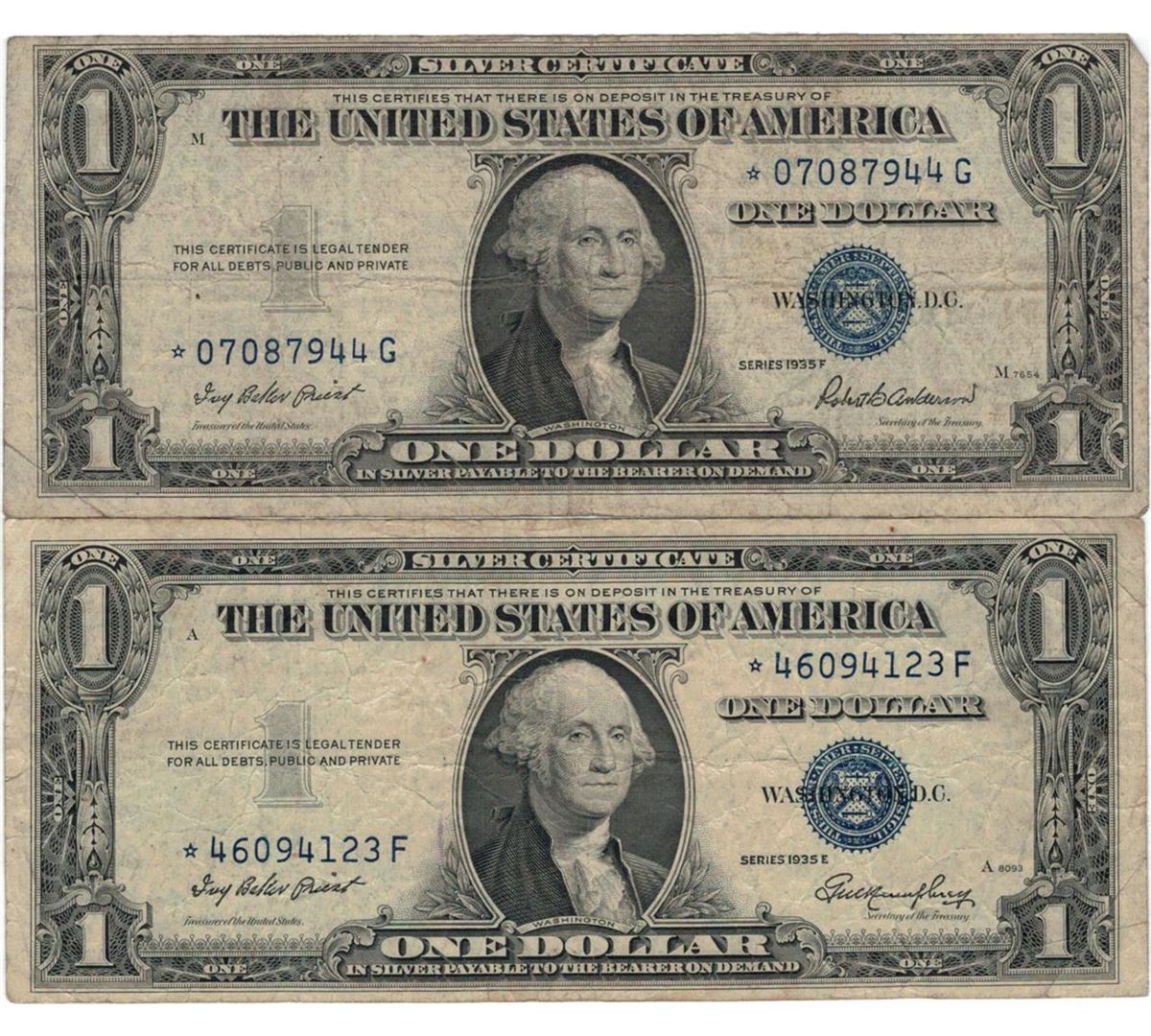 1935 $1 Star Note Silver Certificate Currency Lot of 2.