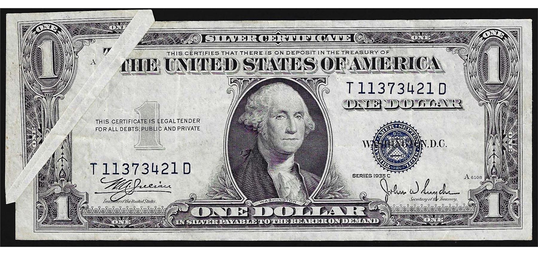 One 1935C $1 Silver Certificate Note Gutter Fold ERROR.