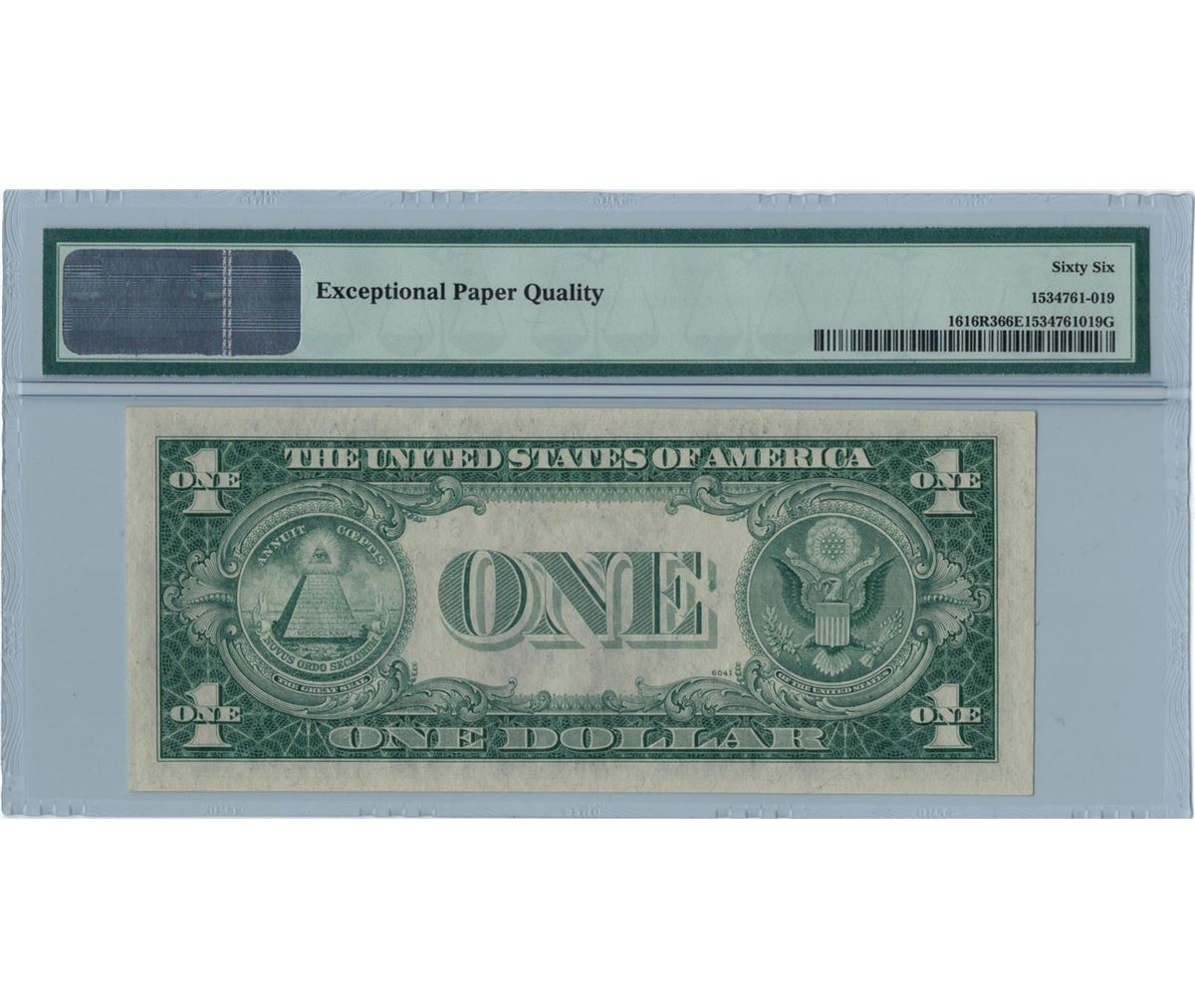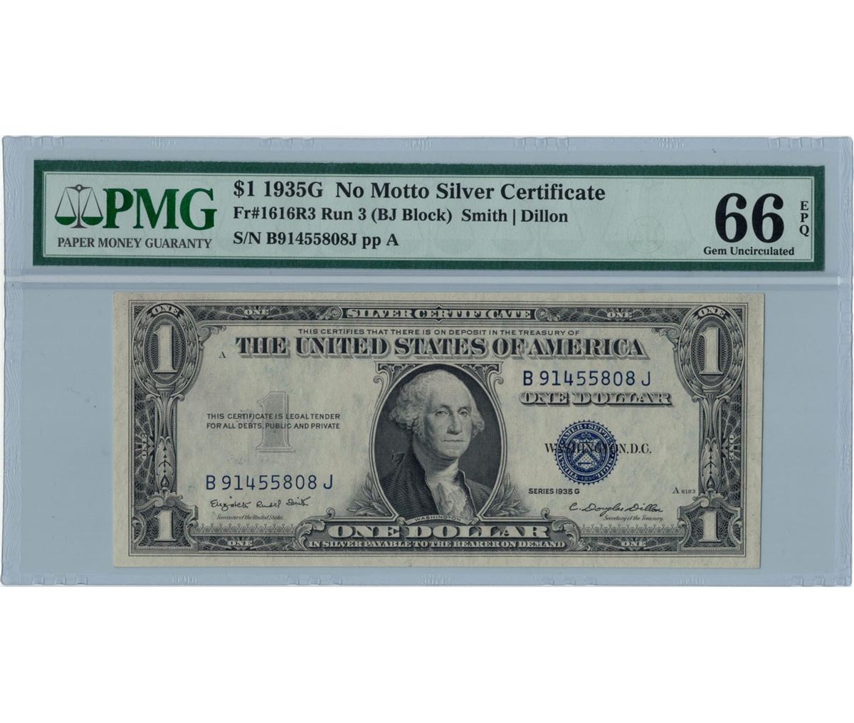 One 1935G PMG GU 66EPQ $1 No Motto Silver Certificate.