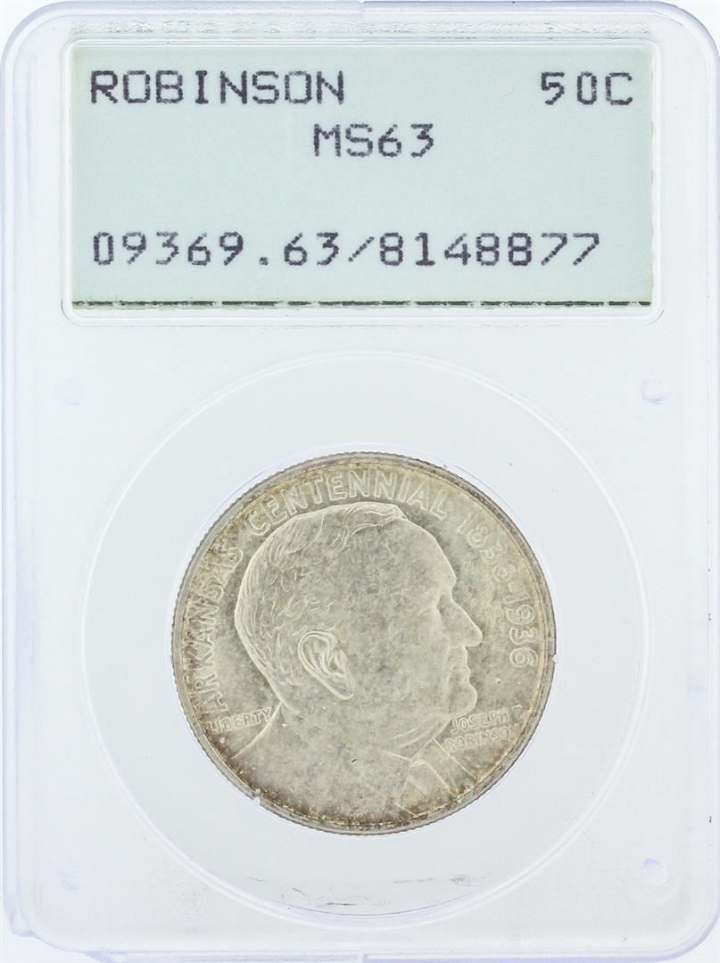 One 1936 PCGS Graded MS63 Robinson Commemorative Half Dollar Silver Coin. PCGS Certified.