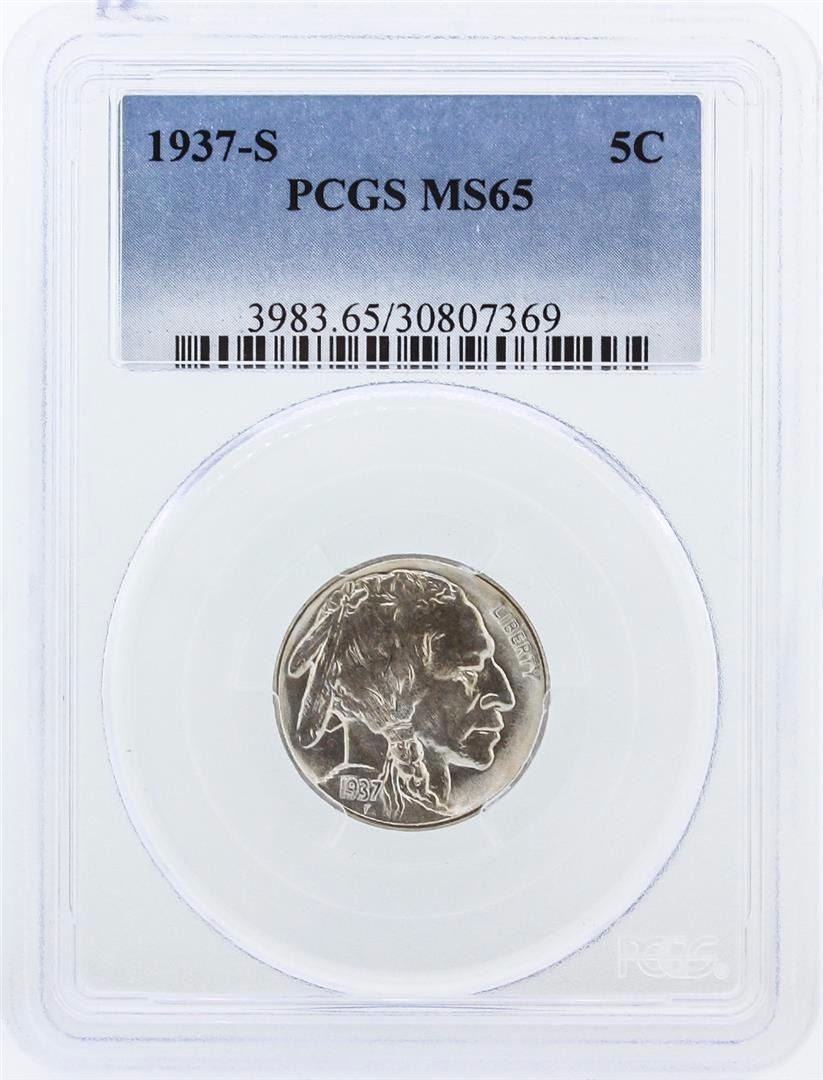 One 1937-S PCGS Graded MS65 Buffalo Nickel Silver Coin. PCGS Certified.