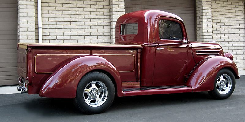 1938 Ford Pickup Truck. Great driver classic. Brandy Wine paint. Chevy 350 V8. Turbo 400 automatic Transmission. Power Steering. Power drum brakes. Custom chrome slot wheels with knock offs. Rodchestor Qaudrajet carb on an Edelbrock performer intake. HEI ignition. Mild cam gives it the right rumble idle. Headers running in to dual exhaust to the rear with glass packs and chrome tips. Tilt steering column. Bed cover. Turn signals. Seat belts. Comfortable bench seat. A few chips on the paint because this is a driver. Dependable. Sounds Great! Nice grocery getter. Great shop truck with the name of your business on the door!