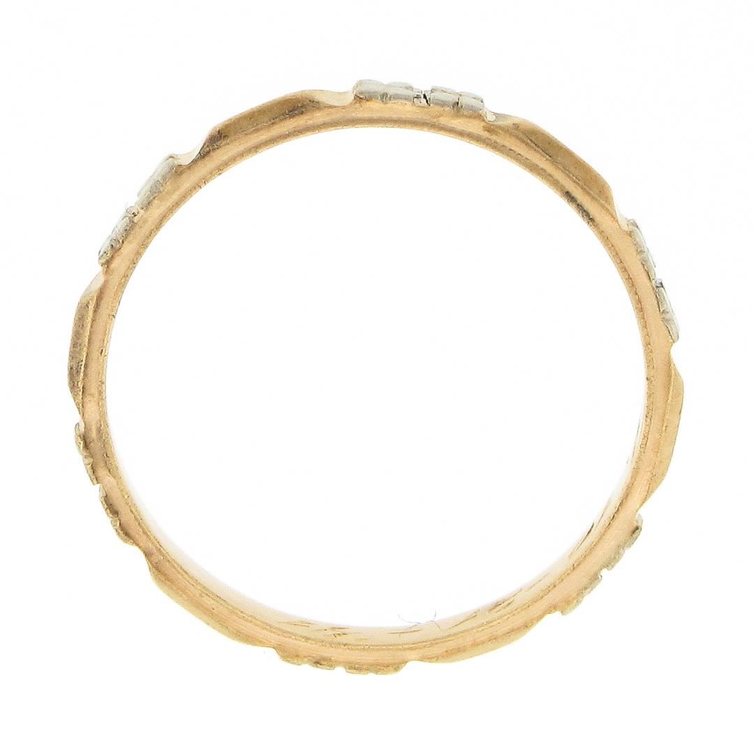 An antique solid 14k yellow & white gold band ring. The ring is size 7.0, weighs a total of 1.40 grams, and measures 2.1mm wide.