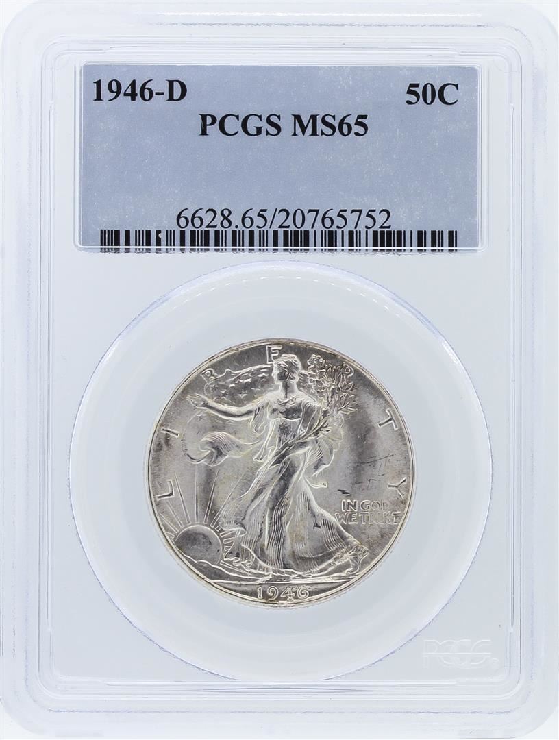 One 1946-D PCGS MS65 Liberty Walking Half Dollar. PCGS Certified.