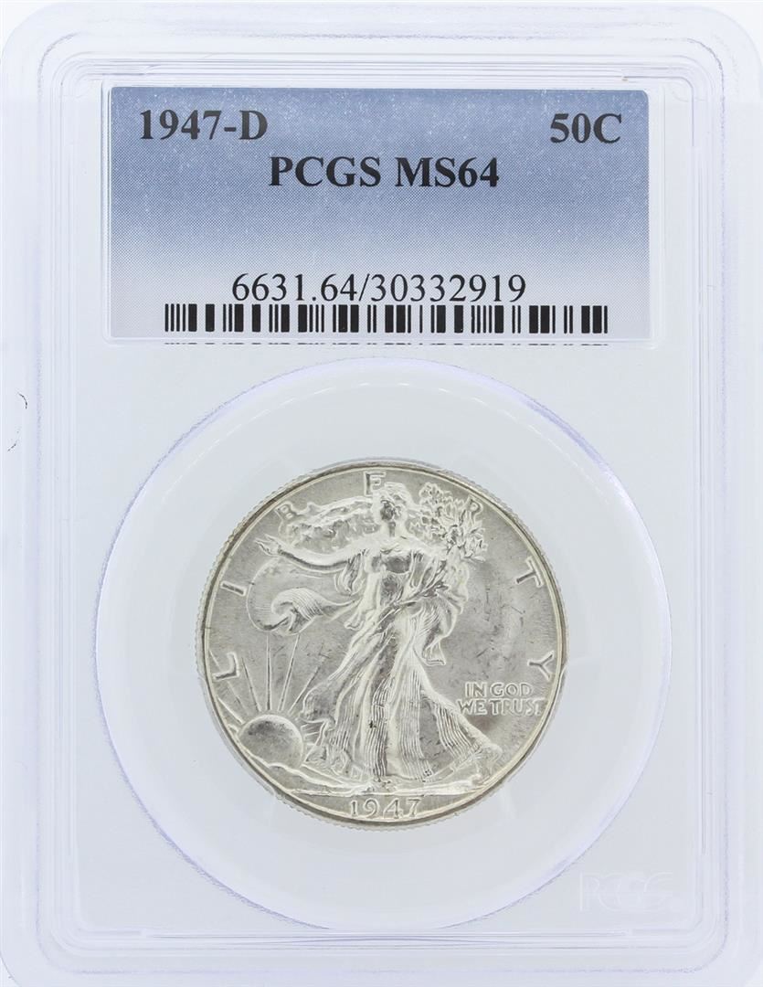 One 1947-D PCGS MS64 Liberty Walking Half Dollar. PCGS Certified.
