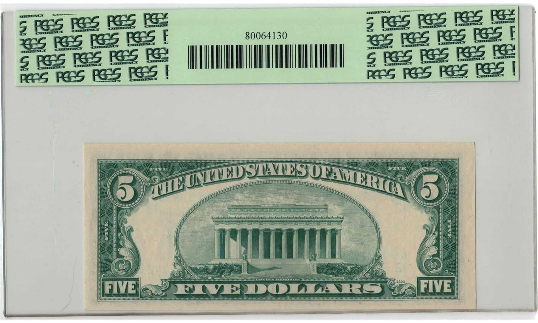 1950-B $5 PCGS Gem New 65PPQ Federal Reserve Note. PCGS Certified.