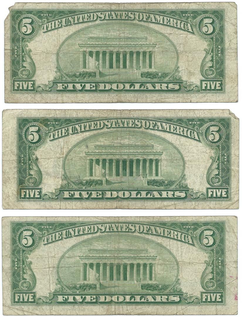 One 1953 $5 Silver Certificate Currency Lot of 3.