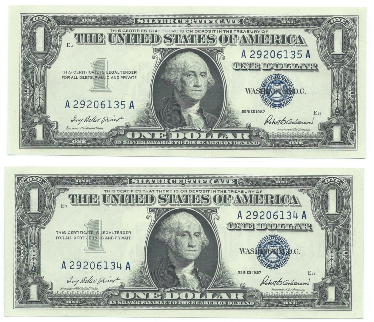 One 1957 $1 Silver Certificate Currency Lot of 2.
