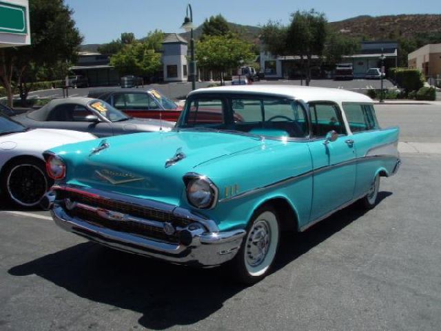 1957 Chevrolet Bel Air Nomad Station Wagon. As-Is Condition. Show Quality! This is a stunning frame-off restored Nomad with 283 V8 with power pack option, automatic transmission, factory power steering and power brakes, restored original style turquoise and black interior, new glass, beautiful spinner hubcaps and radial wide whites. This car looks just as good from the bottom.