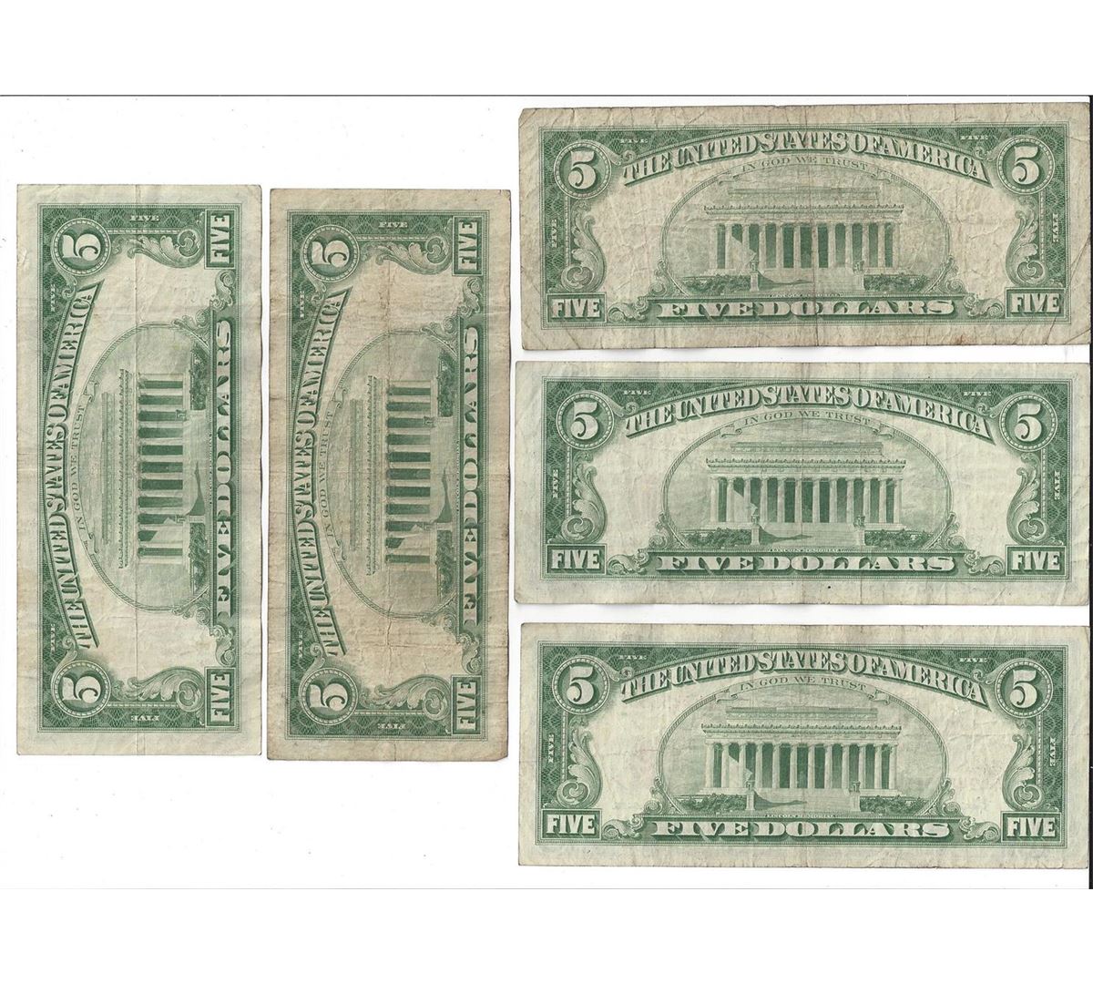 1963 $5 Red Seal Bill Lot of 10.