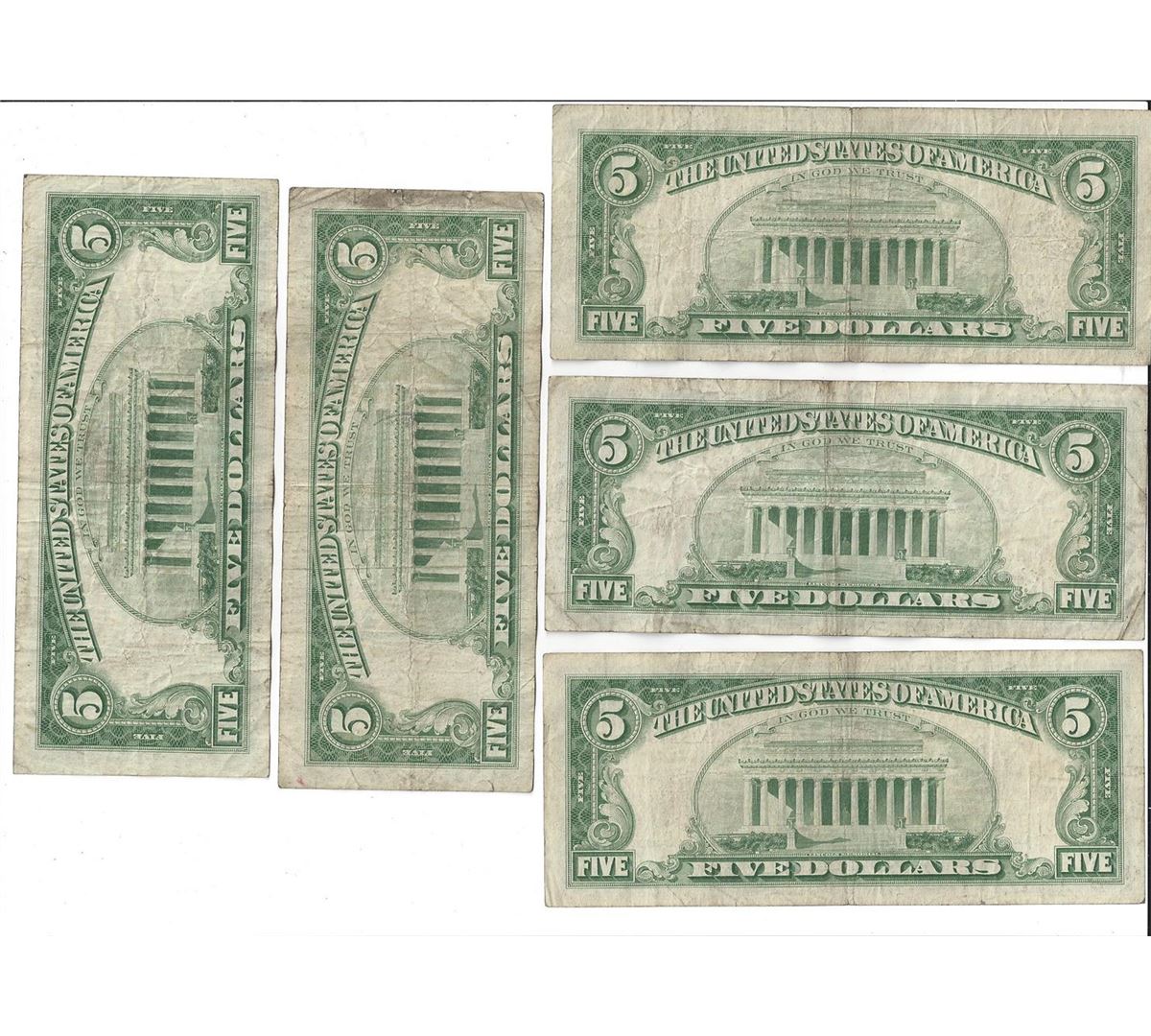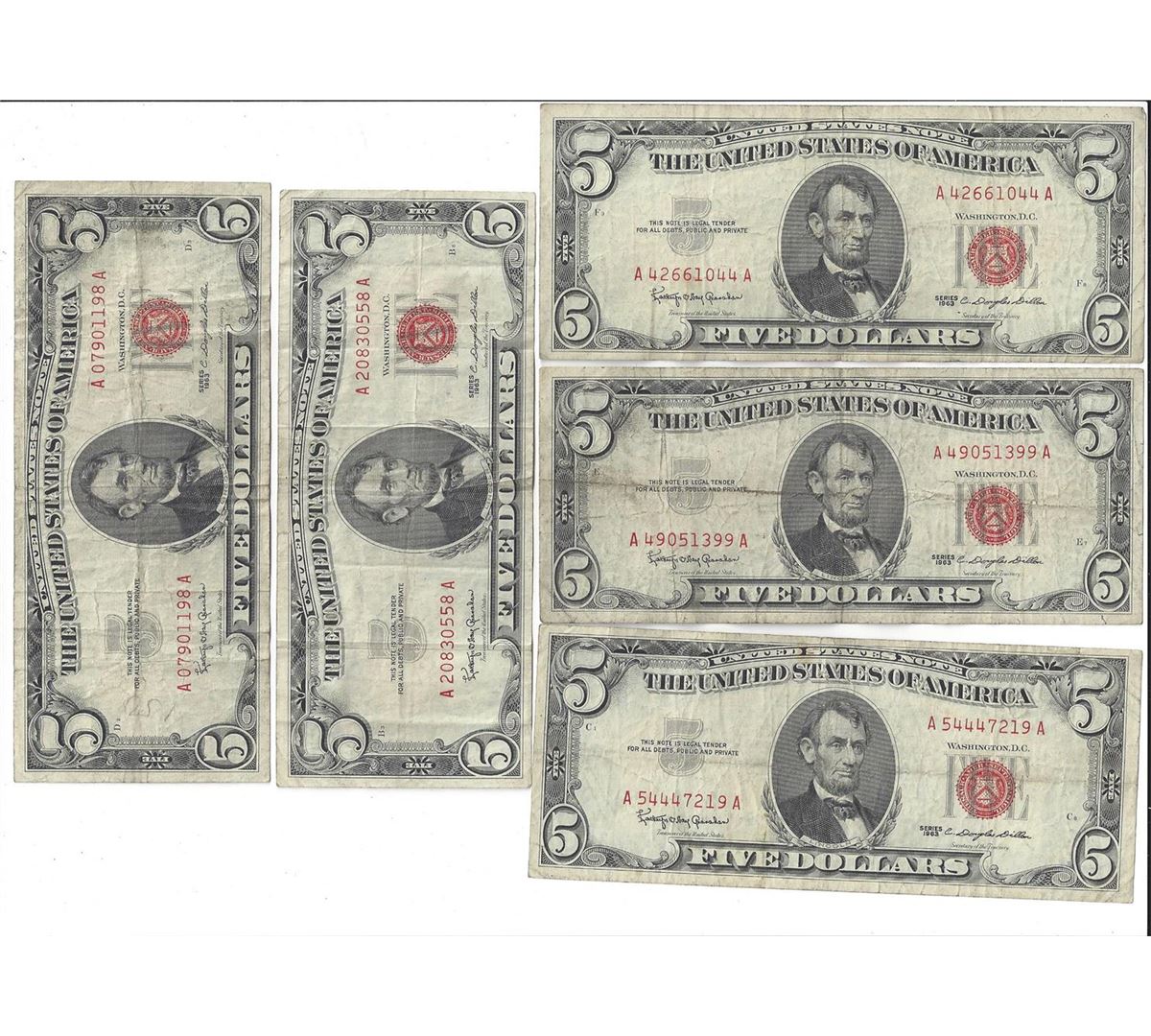 1963 $5 Red Seal Bill Lot of 10.