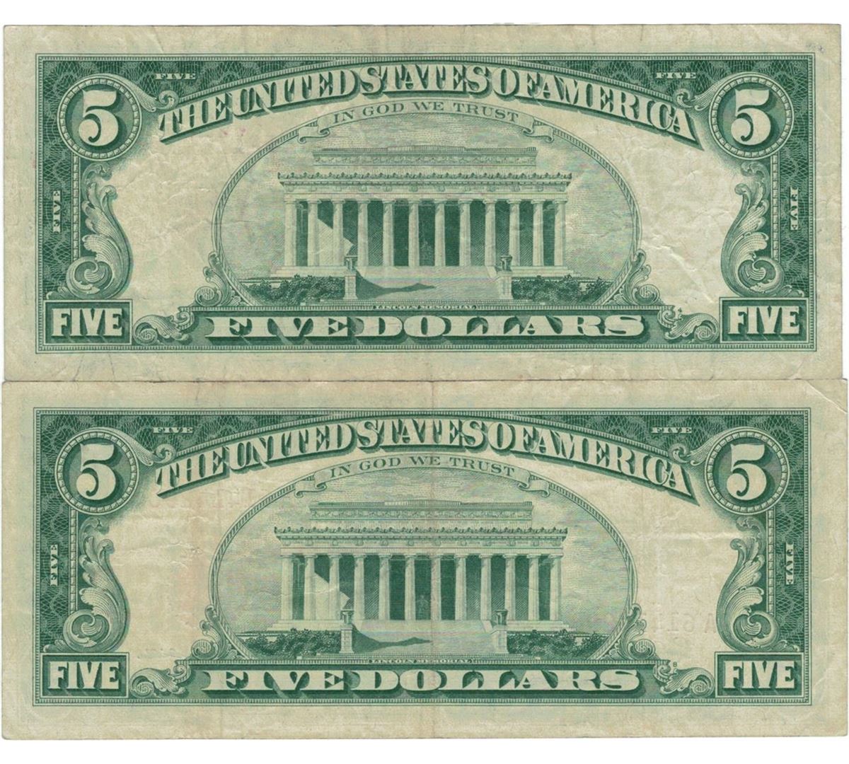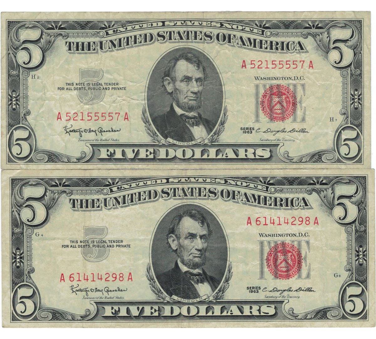 1963 $5 Red Seal Bill Lot of 2.