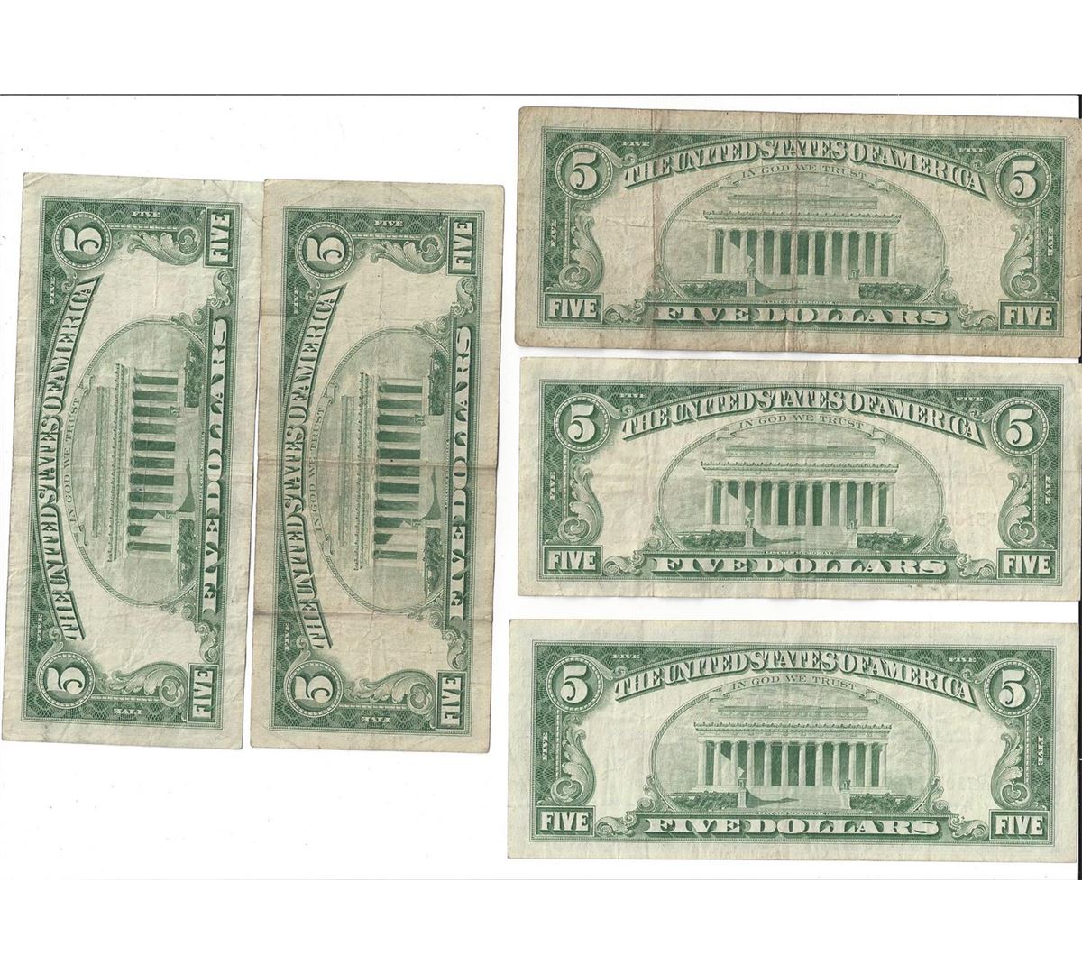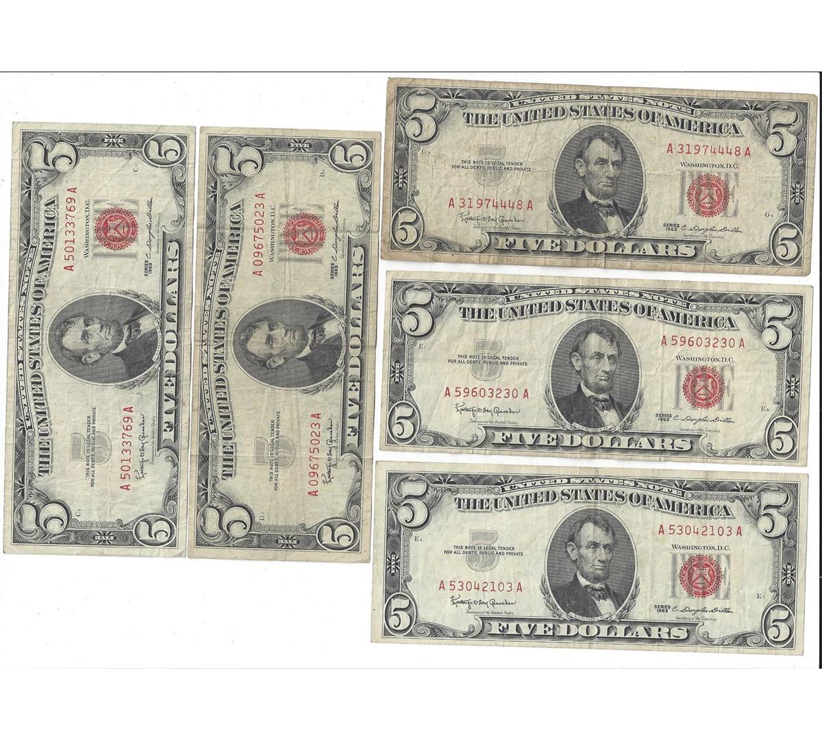 1963 $5 Red Seal Bill Lot of 5.