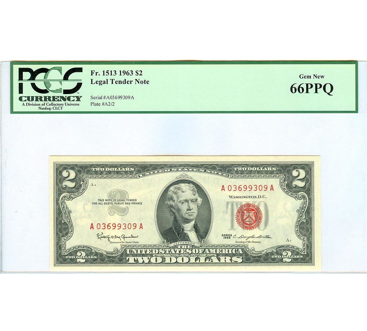 One 1963 PCGS GN66PPQ $2 Red Seal Legal Tender Bank Note.