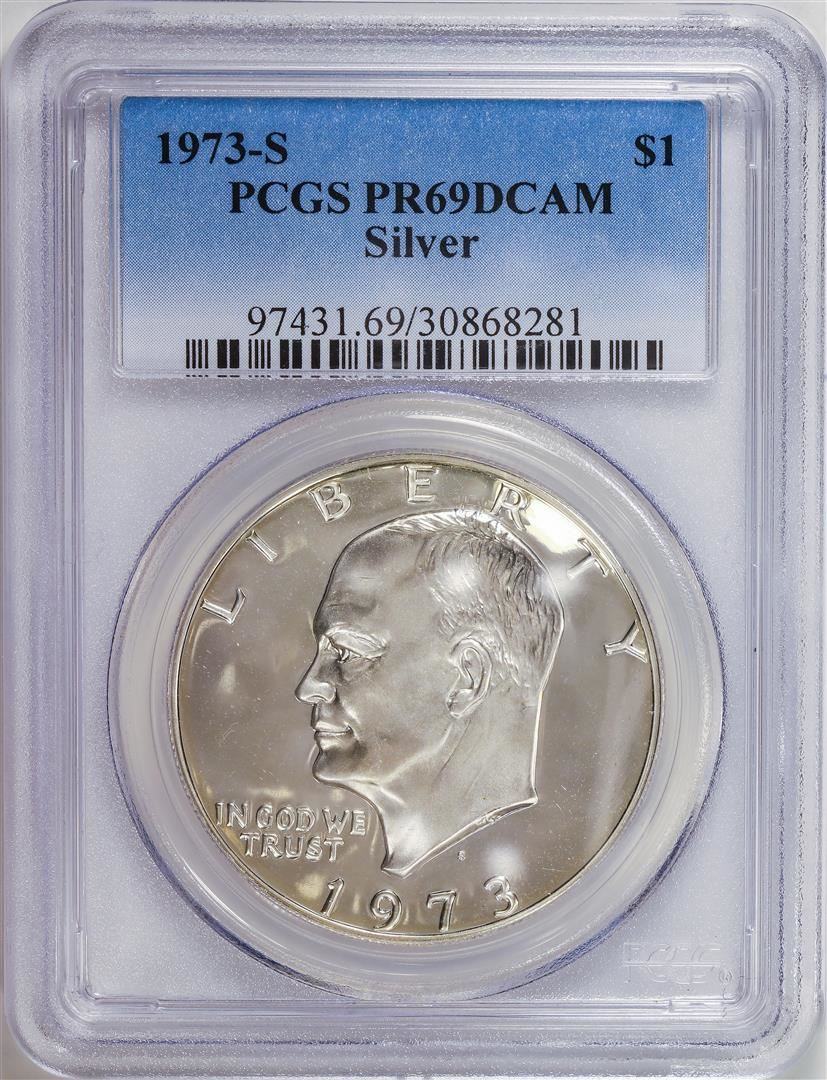 One 1973-S Eisenhower Dollar Coin PCGS PR69DCAM.