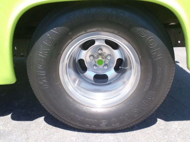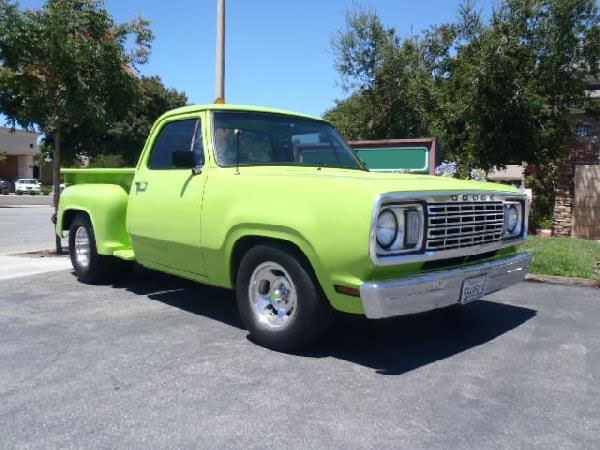 1977 Dodge D100 Stepside Pro Street Pickup Truck. As-Is Condition. Check out this Pro Street truck! Powered by a 360 cubic inch engine with some performance upgrades like a 510 lift, 280 degree duration cam, ported and polished heads, Mopar intake with a 700 Holley carb, Hooker headers, 727 tranny, 3000 rpm stall speed converter and 9.25 inch 4:10 Detroit Locker differential. The truck also features a diamond plated bed floor, custom dash with Autometer gauges, Fosgate amped MP3 player stereo and a Grant steering wheel finishing up the interior. This truck rides on 15x15 US mags in the rear and 15x7s in the front. The truck is painted in a single-stage Glasurit Barracuda Green!