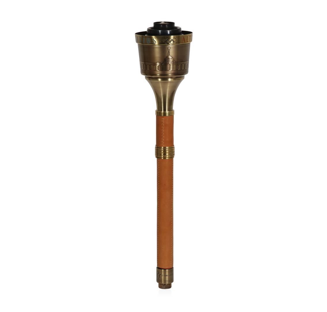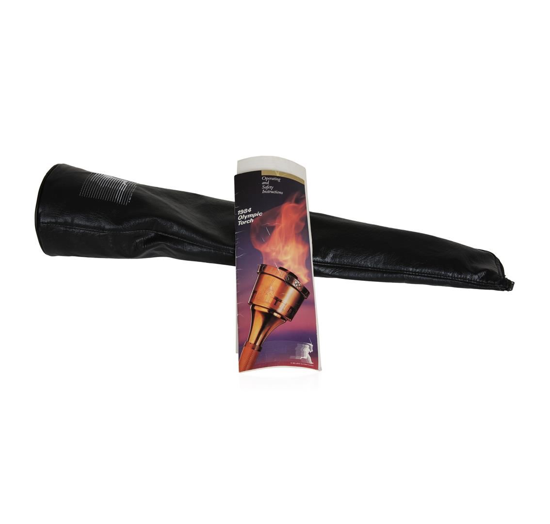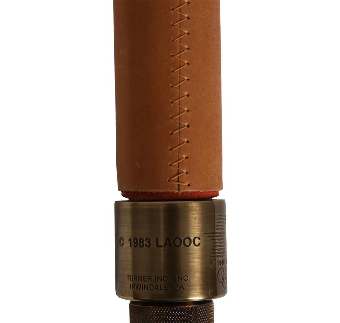 This time capsule piece should be sitting in a museum. This torch from an Olympics best remembered for Carl Lewis' four Gold Medals to match Jesse Owens, and Mary Lou Retton's flawless vault in women's gymnastics. While other torches got in on the fun, however, this one was left at home. The result is a Dead Mint specimen in its original leather case and operation instructions View pictures to see condition. Highly collectible in any condition, this unimprovable representation should really strike a chord with serious Olympic collectors. The torch is constructed of spun aluminum, with an antique brass finish. The torch is inscribed with the Olympic motto, "Citius, Altius, Fortius." The torch run for the 1984 summer olympics lasted 82 days and traveled through 33 states, plus the District of Columbia. This official torch is number 0799.