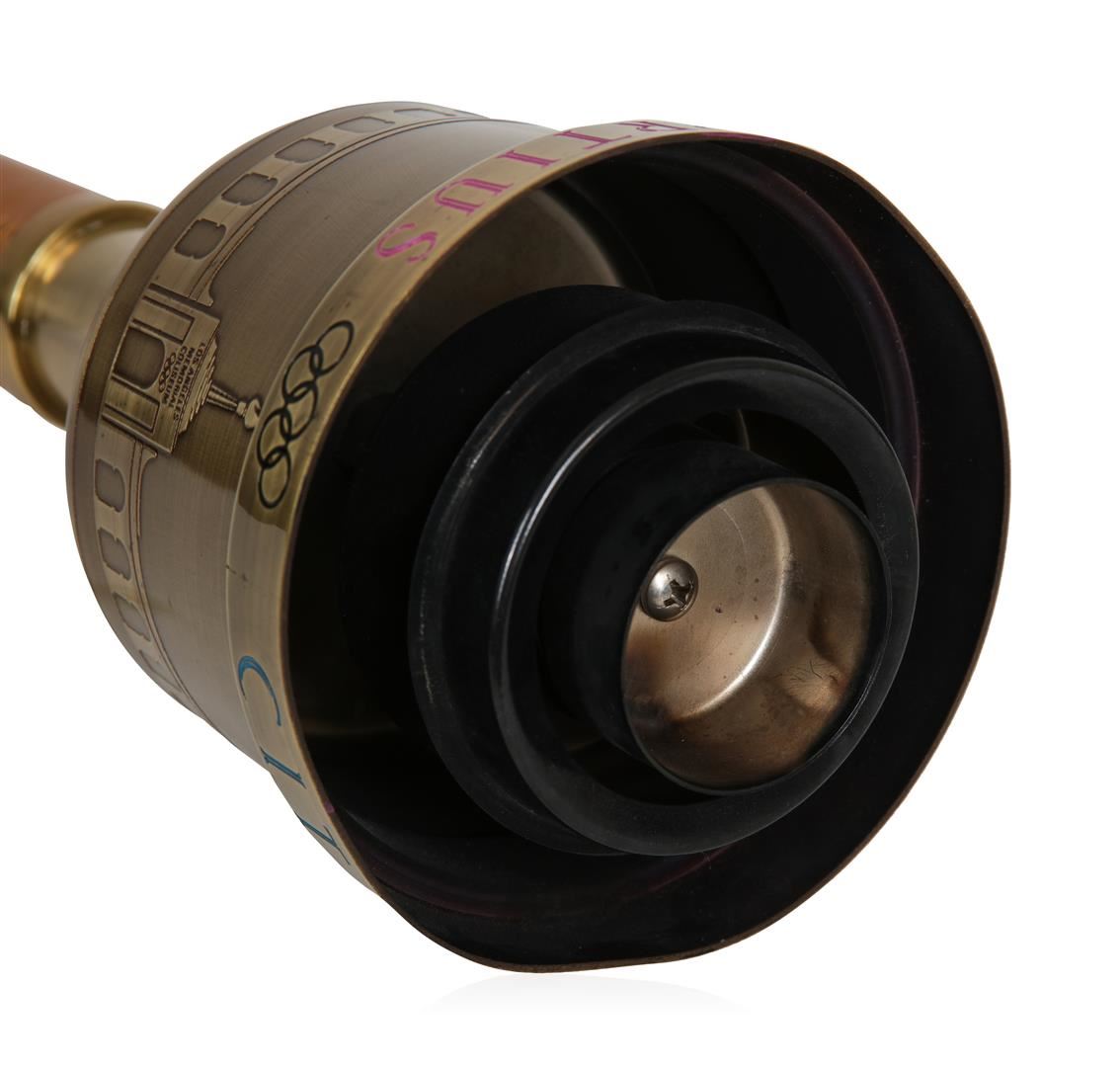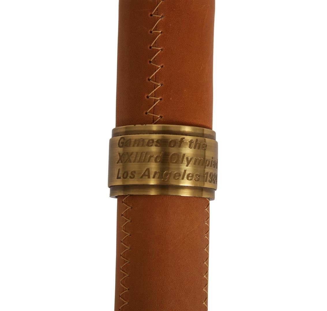 This time capsule piece should be sitting in a museum. This torch from an Olympics best remembered for Carl Lewis' four Gold Medals to match Jesse Owens, and Mary Lou Retton's flawless vault in women's gymnastics. While other torches got in on the fun, however, this one was left at home. The result is a Dead Mint specimen in its original leather case and operation instructions View pictures to see condition. Highly collectible in any condition, this unimprovable representation should really strike a chord with serious Olympic collectors. The torch is constructed of spun aluminum, with an antique brass finish. The torch is inscribed with the Olympic motto, "Citius, Altius, Fortius." The torch run for the 1984 summer olympics lasted 82 days and traveled through 33 states, plus the District of Columbia. This official torch is number 0799.