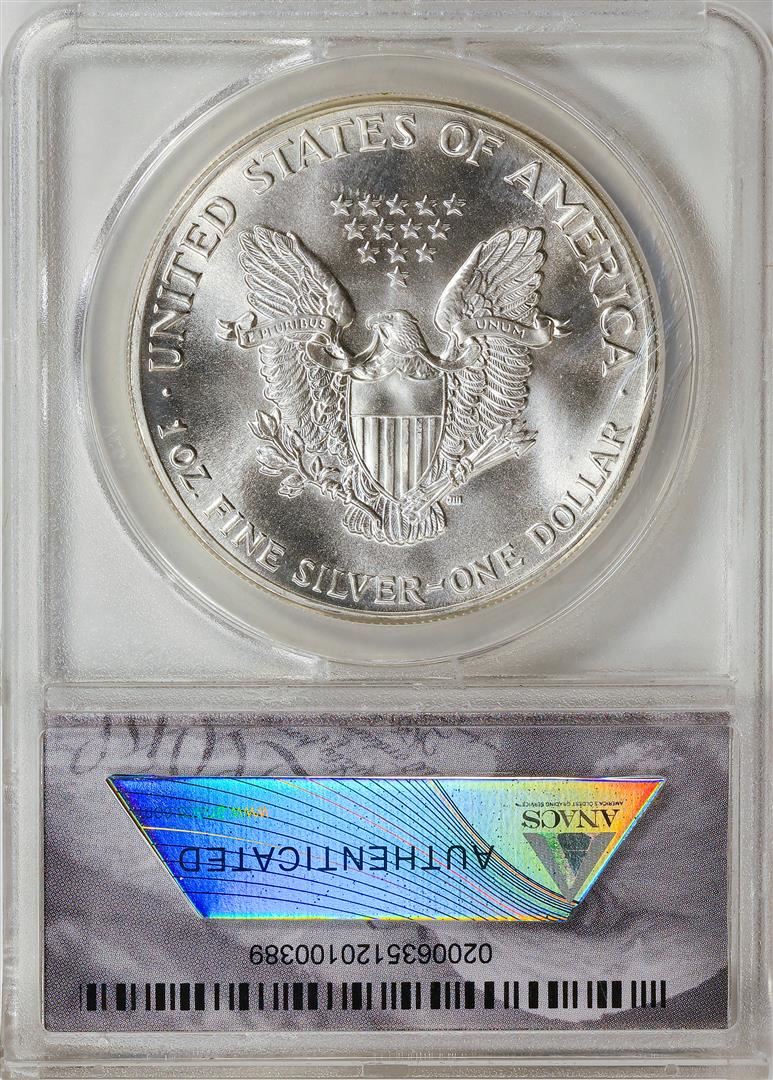 One 1986 American Silver Eagle .999 Fine Silver Dollar Coin ANACS MS70 First Strike.