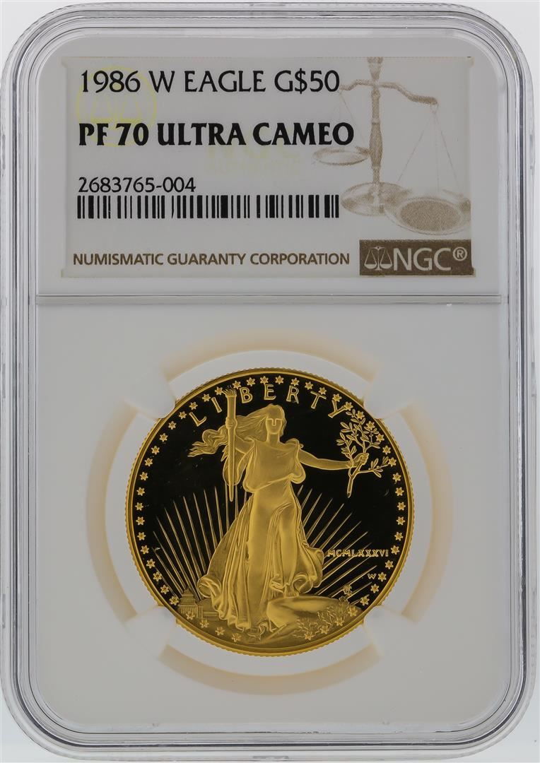 One 1986-W NGC PF70 Ultra Cameo $50 Eagle Gold Coin. NGC Certified.