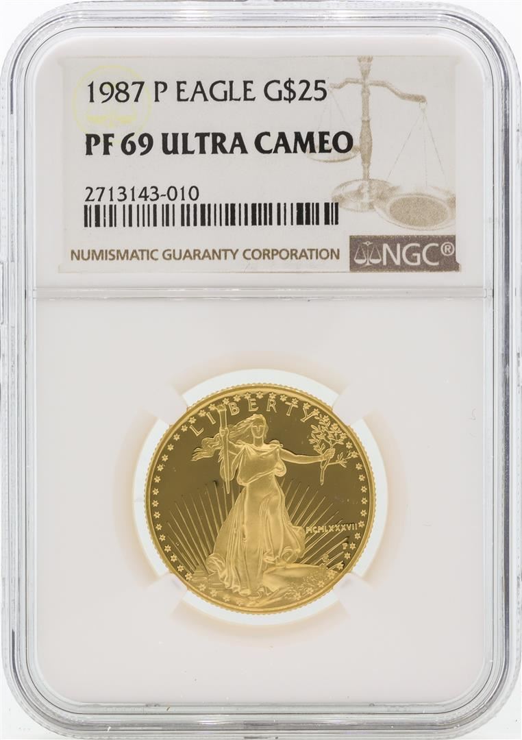 One 1987-P PF69 Ultra Cameo $25 Gold Eagle. NGC Certified.