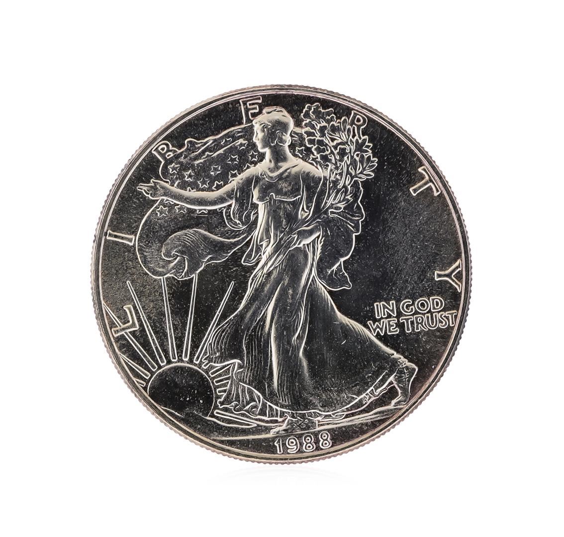 One 1988 American Silver Eagle Dollar Coin.