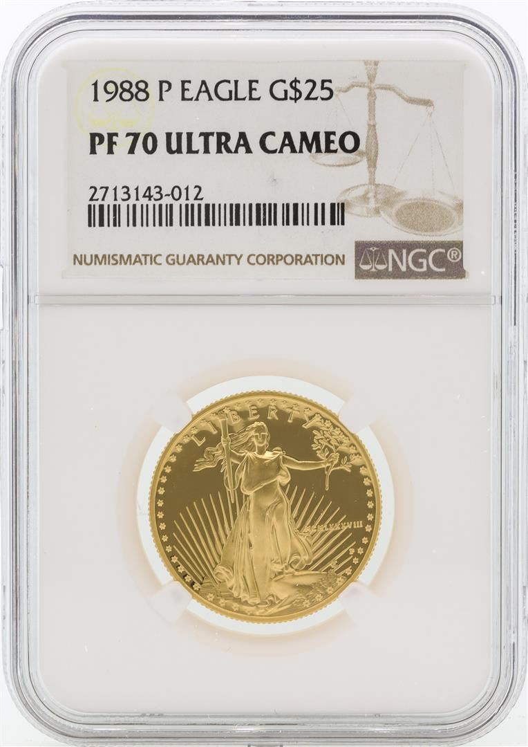 One 1988-P PF70 Ultra Cameo $25 Gold Eagle. NGC Certified.