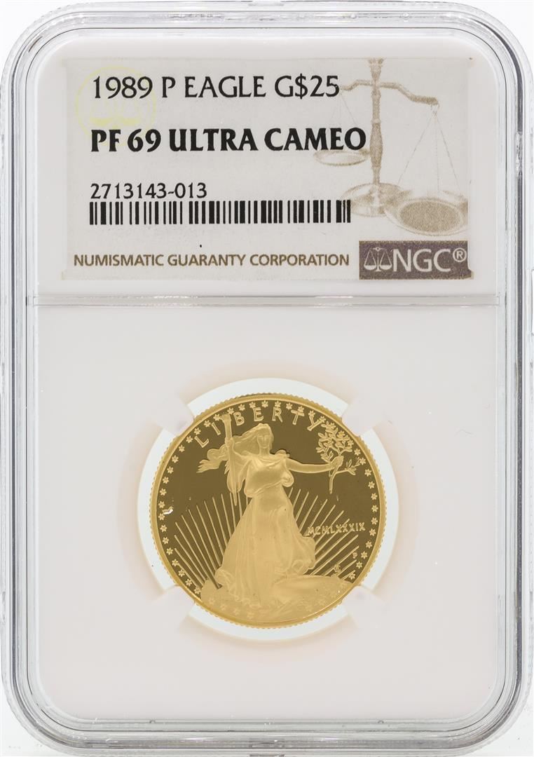 One 1989-P PF69 Ultra Cameo $25 Gold Eagle. NGC Certified.