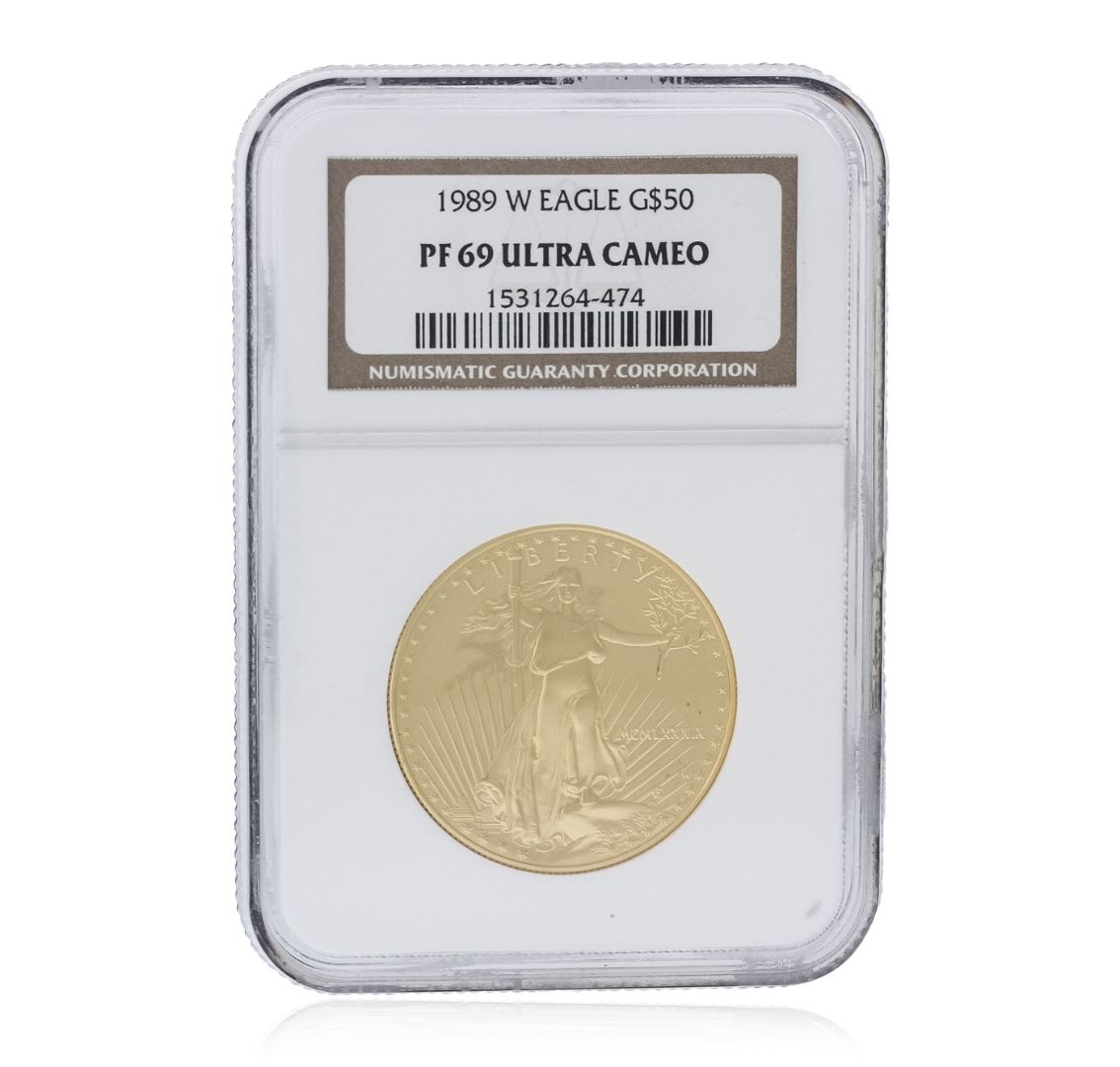 One 1989-W $50 1 Oz American Gold Eagle Coin NGC Graded PF69 Ultra Cameo.