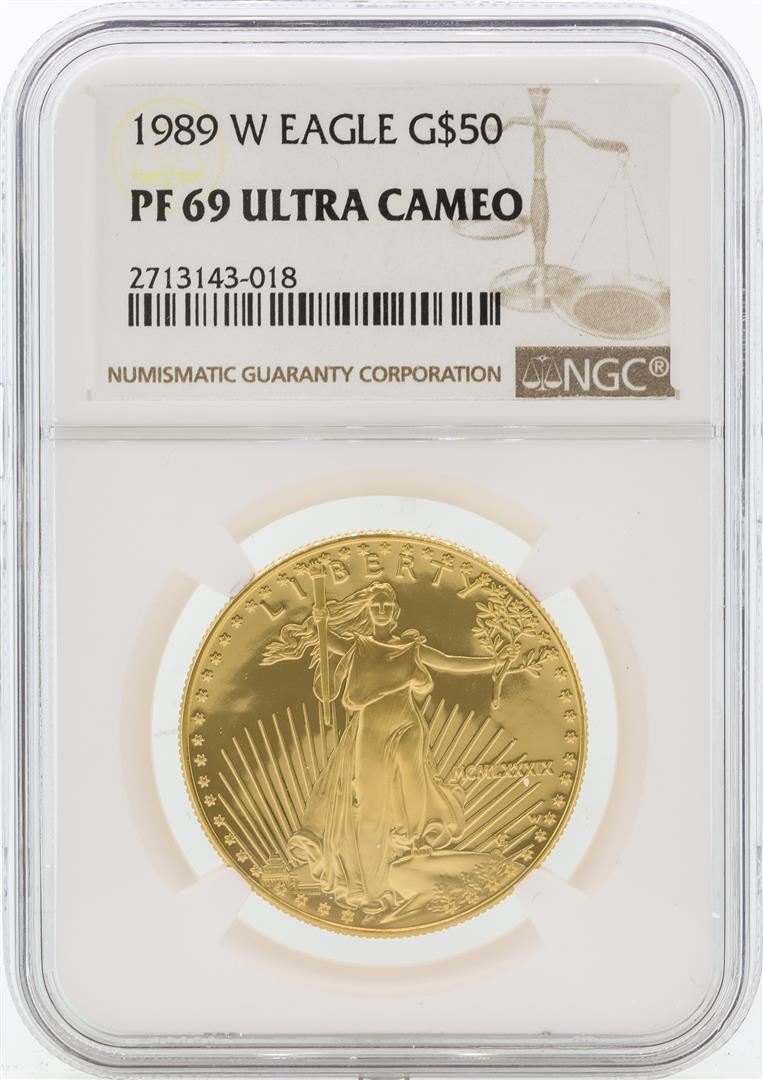 One 1989-W PF69 Ultra Cameo $50 Gold Eagle. NGC Certified.