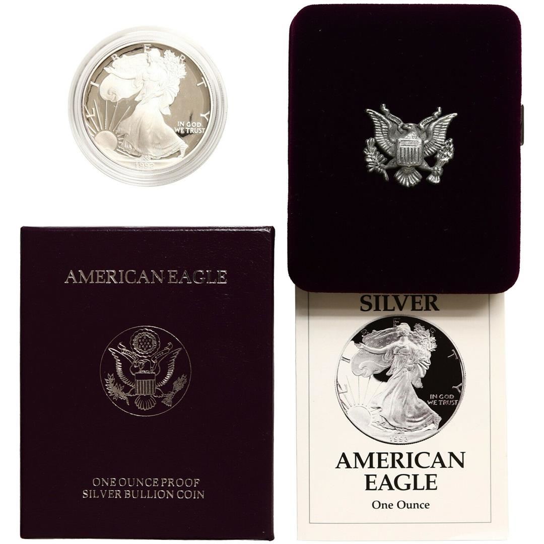 One 1992-S $1 American Silver Eagle Dollar Proof Coin w/Case & COA.