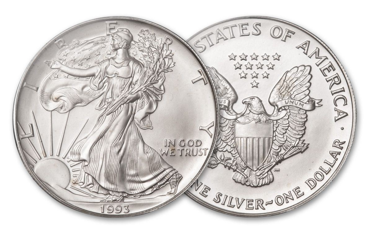 One 1993 American Silver Eagle .999 Fine Silver Dollar Coin.