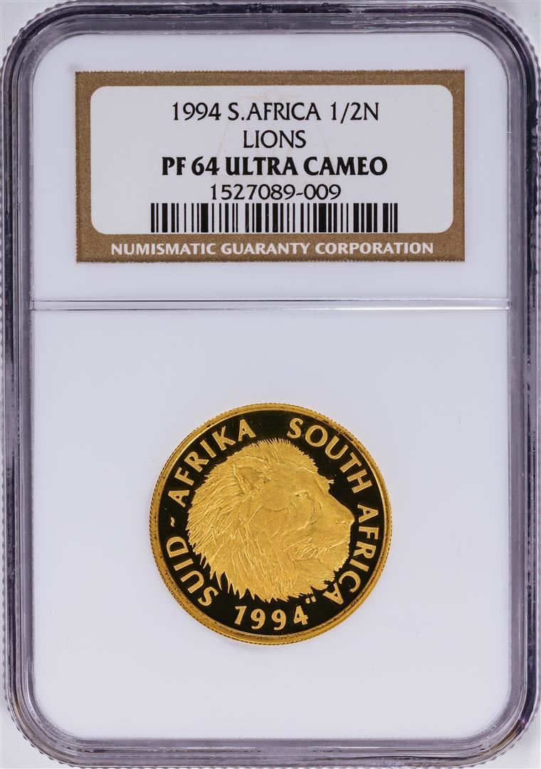 One 1994 S. Africa 1/2oz Lions Gold Coin PF64 Ultra Cameo.
