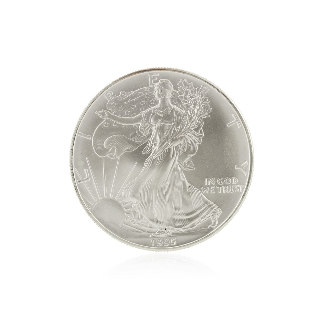 One 1995 American Silver Eagle Dollar BU Coin.