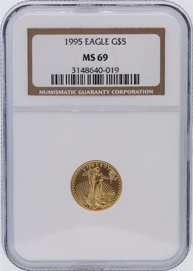 One 1995 NGC Graded MS69 $5 American Eagle 1/10 oz Gold Coin. NGC Certified.